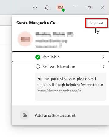 Step 3: If Teams does not close by itself after signing out, please close the application by following the steps below.